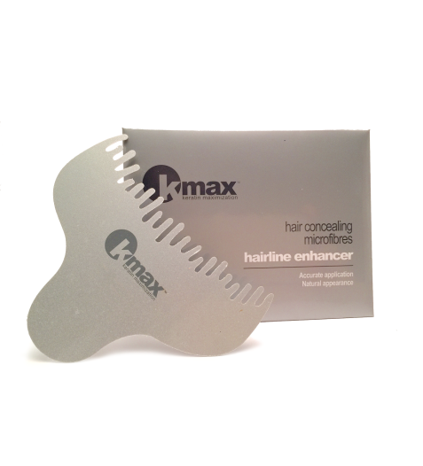 KMax HairLine t'ajudarà a crear la línia frontal amb un aspecte més natural, es pot utilitzar en tota la part frontal del cabell. El seu disseny amb les dents irregulars farà que les microfibres de queratina es dispersin de forma correcta només on es vulgui i imitant un naixement natural.