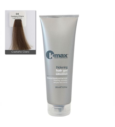 Kmax thickening hair gel HI-density està formulat especialment per al cabell feble, fi, així com debilitat o encanudit, i gràcies als seus actius espessidors, condicionadors i reestructurants, deixa al cabell un aspecte de major densitat amb una aparença més espessa. Integrat en la seva fórmula conté fibres de queratina, el que confereix al cabell un major volum i un efecte que dissimula la manca de densitat i el cabell fi.