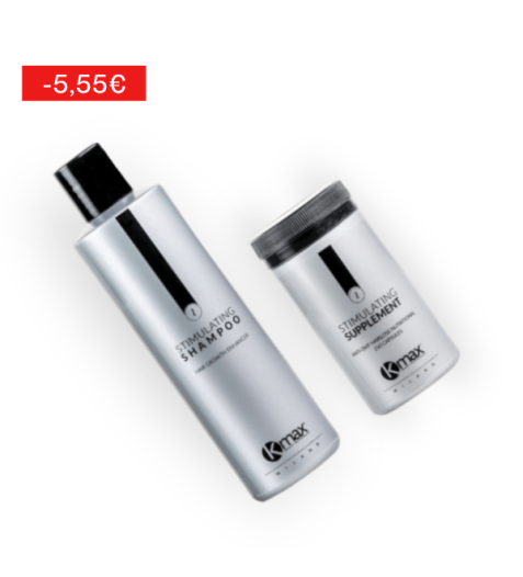 La combinació del xampú Kmax Stimulating, que treballa externament per frenar la formació de l'hormona DHT, juntament amb la presa diària de les càpsules Kmax Hairloss Supplement Anti-DHT, que actuen directament des de l'interior, proporciona una solució integral per combatre la caiguda del cabell i estimular el creixement de nou cabell.